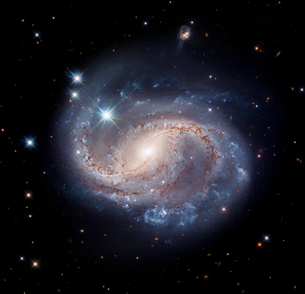 Against an inky black background, the blue swirls of spiral galaxy NGC 6956 stand out radiantly. NGC 6956 is a barred spiral galaxy, a common type of spiral galaxy with a bar-shaped star structure at its center. This galaxy exists 214 million light-years away in the constellation Delphinus.